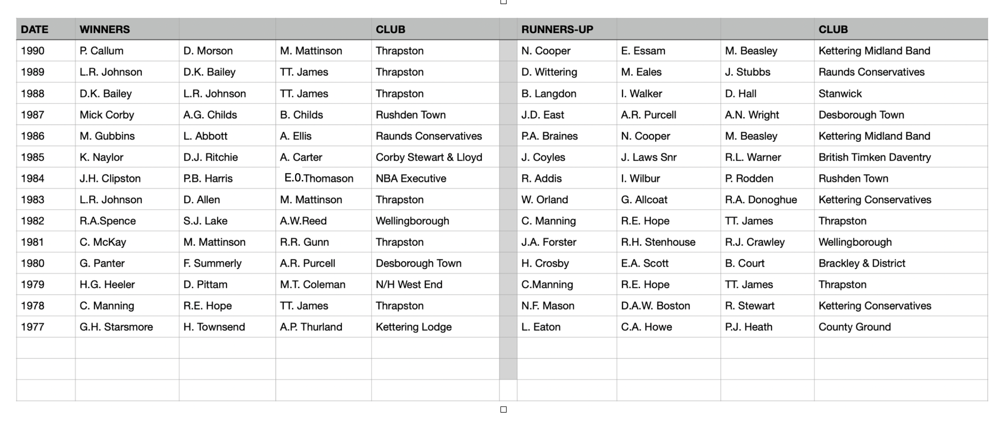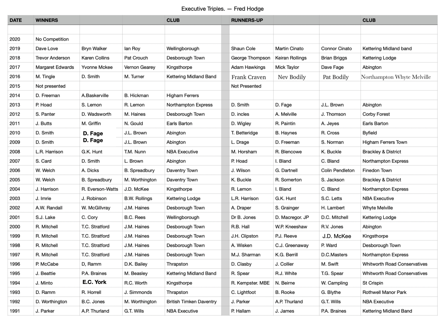 2021 Winners: Steve Limbert, Doug Gilbert, & Brian Hickman (Higham Ferrers BC)