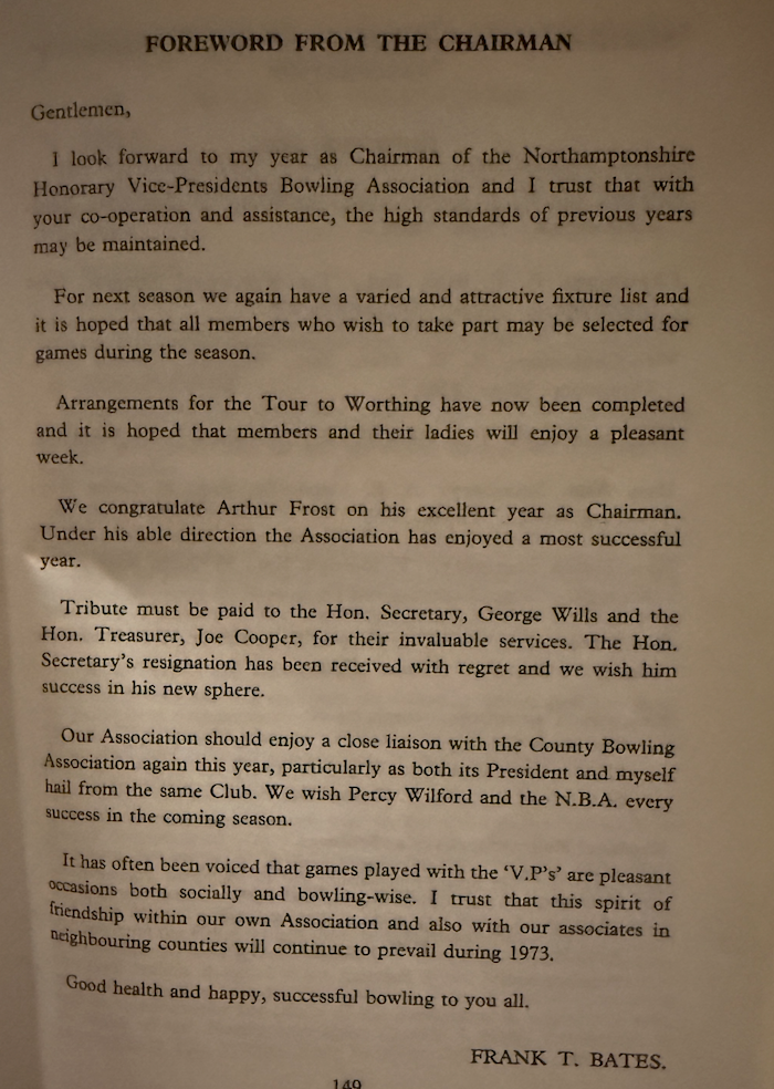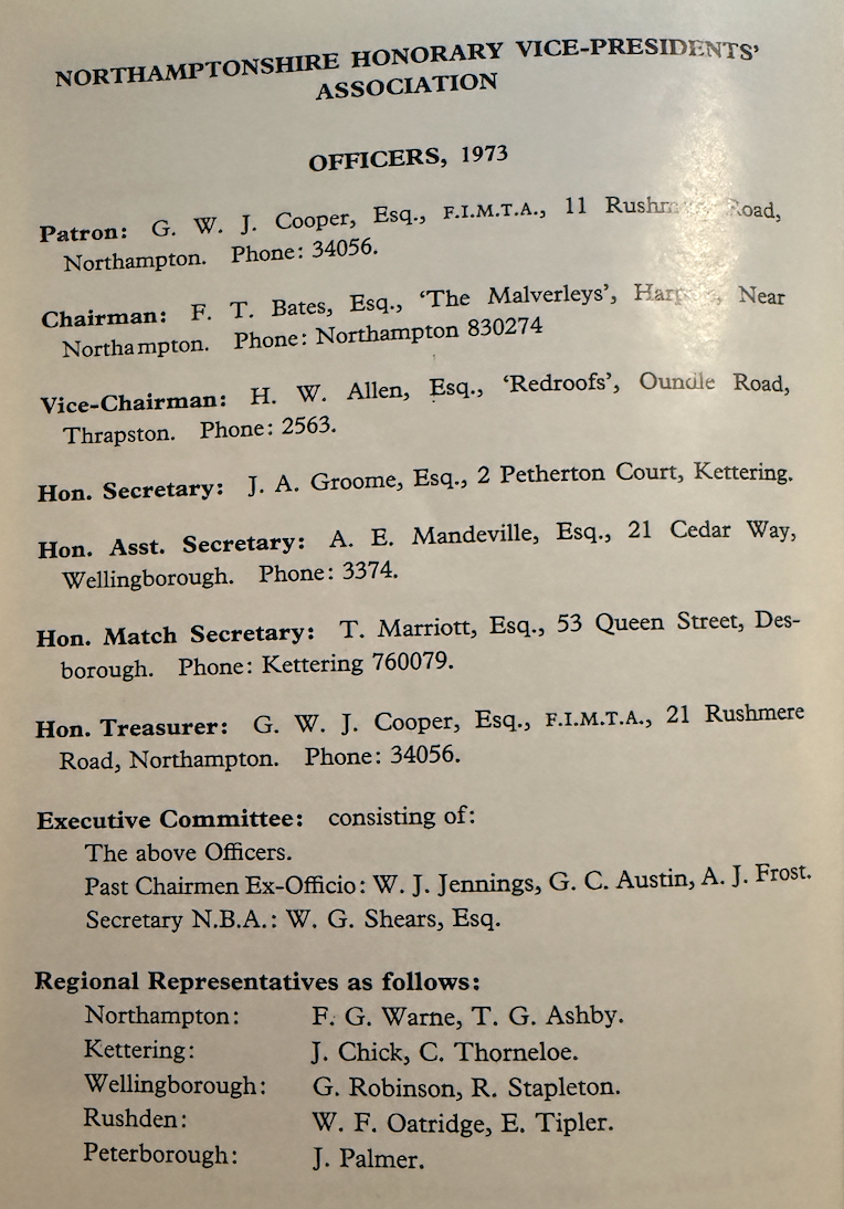 | 1973 | England Internationals | J.A. Forster | Wellingborough BC |