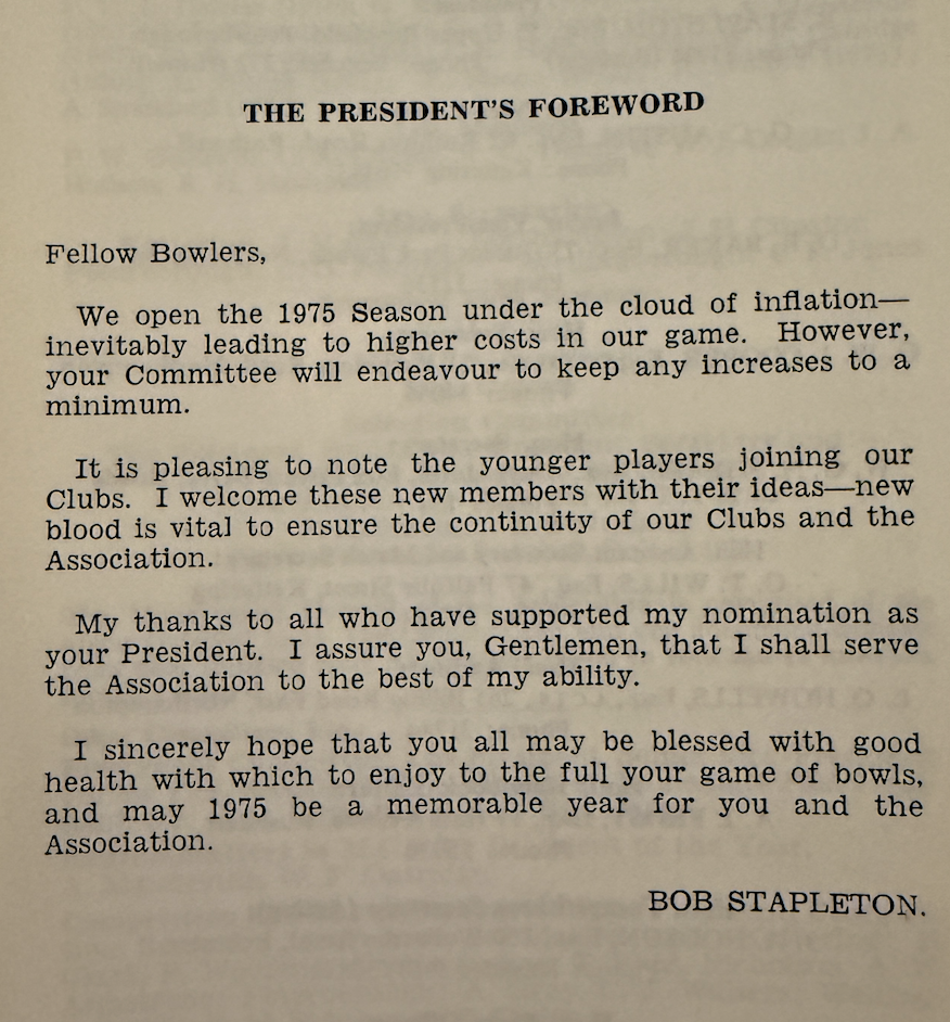 The attractive win bonus being dangled before them was a trip to Johannesburg, South Africa to see the World Bowls Championships in February 1976. If the county won the cup, their 24 man team would make the all expenses paid journey as guests of County President Bob Stapleton, and Stapleton was confident his team would produce the form to make him fulfill his promise.