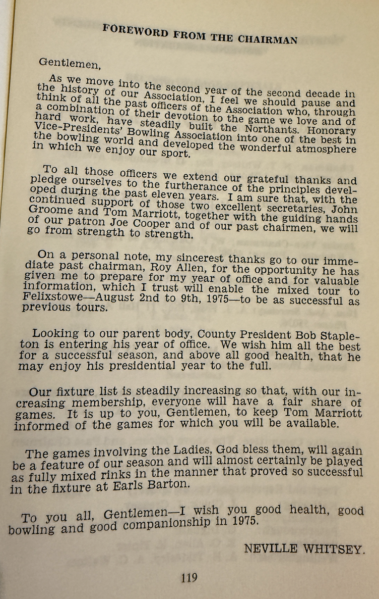 AGM 13th December - Mr Fred Mason said that George Wlls had won the Charles Mason (champion of champions) Cup for the third time in 1975, and under the Rules of the competition had, therefore, won it outrght.