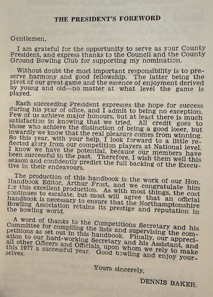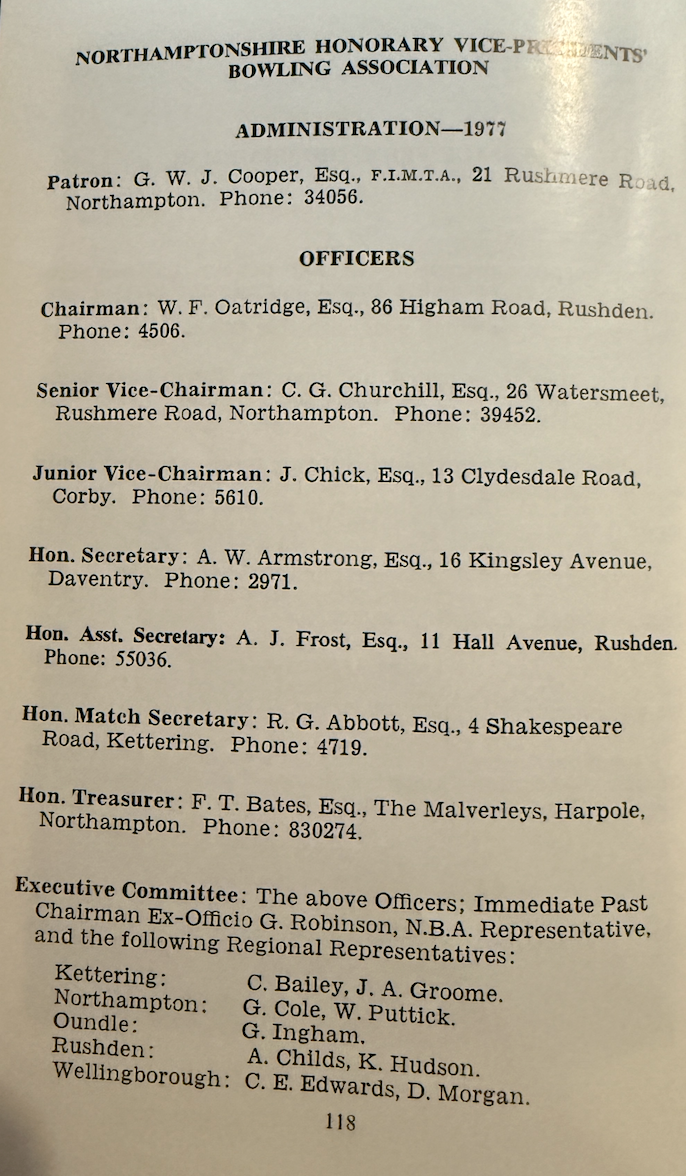 | Fours Winners | D. Vincent | Rothwell Conservative BC |