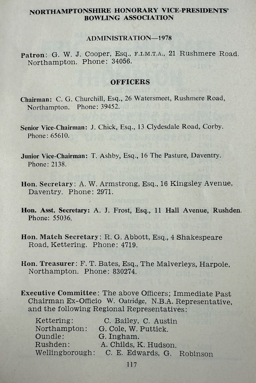 | Fours Winners | D. Vincent | Rothwell Conservatives BC |