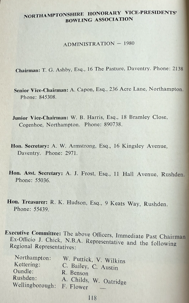 | Secretaries Cup | V. Glover | Kettering Lodge BC |