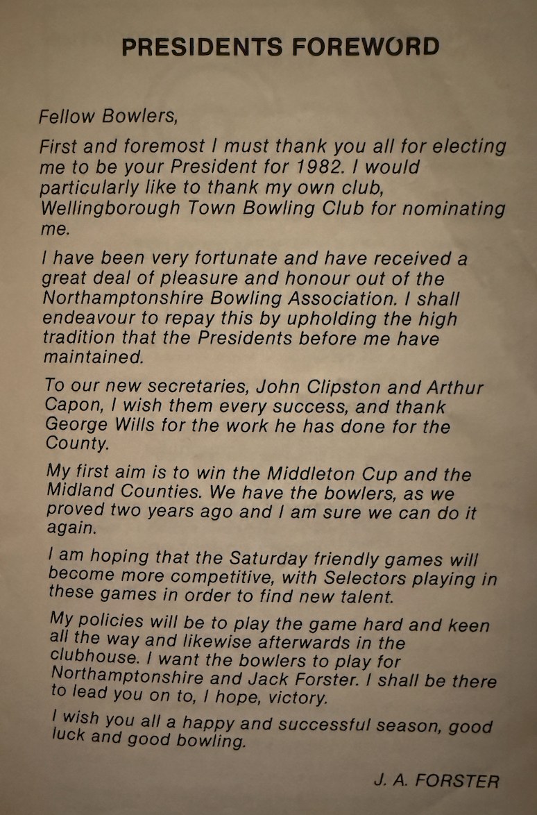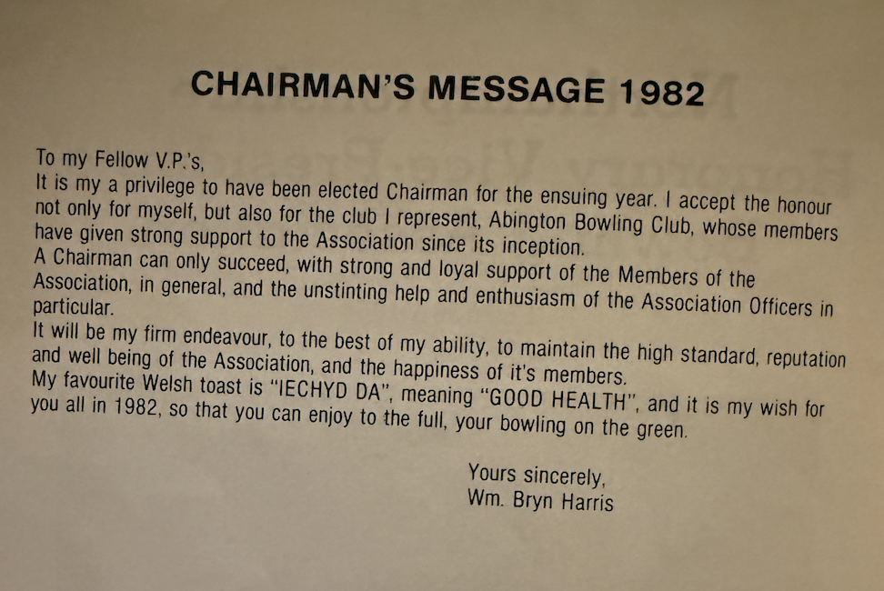 | 1982 | 60's & over Singles | WINNER | C. Bussey | Kettering Lodge BC |