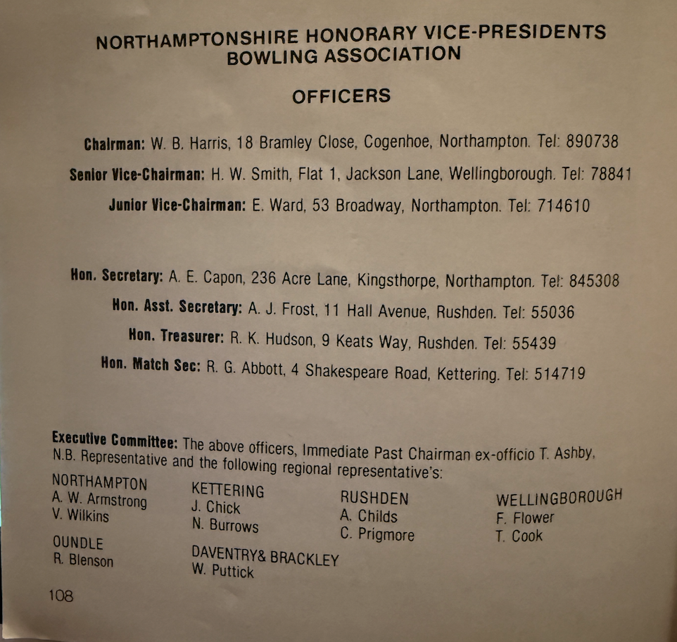 | 1982 | England International Trialist | J.H. Clipston | Kingsthorpe BC |
