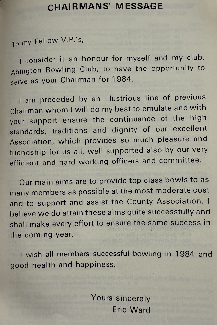 | 1984 | National Triples | Finalists | C. Bussey | Kettering Lodge BC |