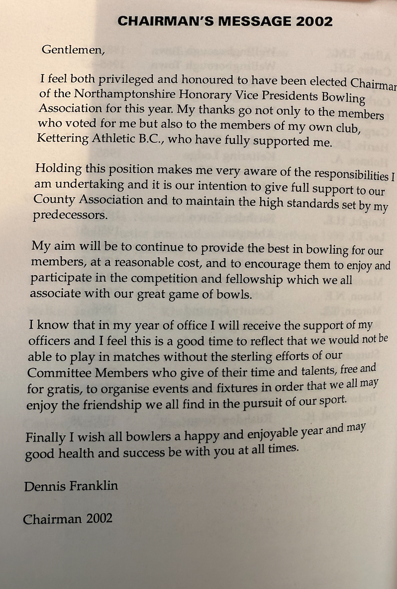 | 2002 | International Player | N.D. McKee | Kingsthorpe BC |