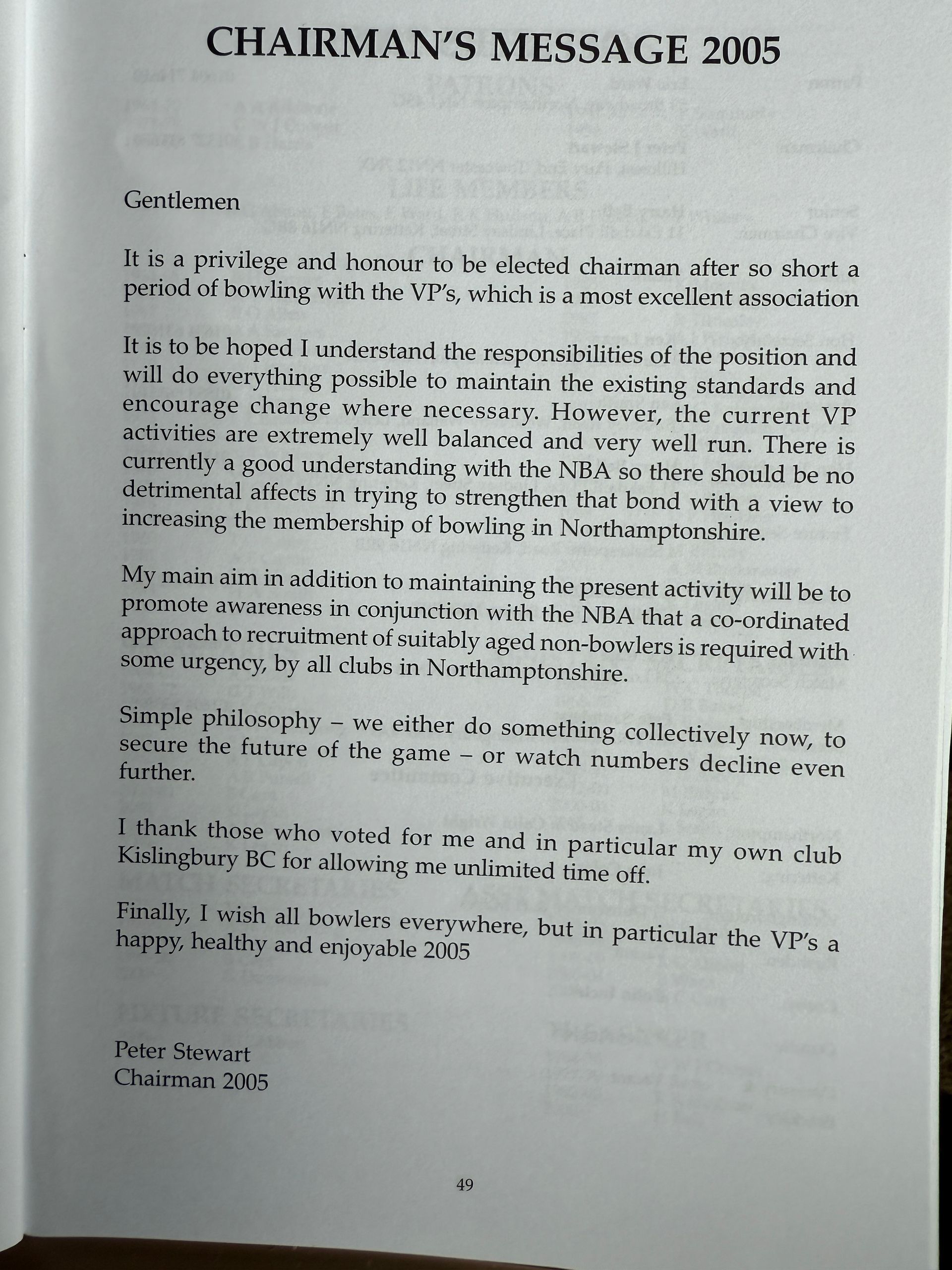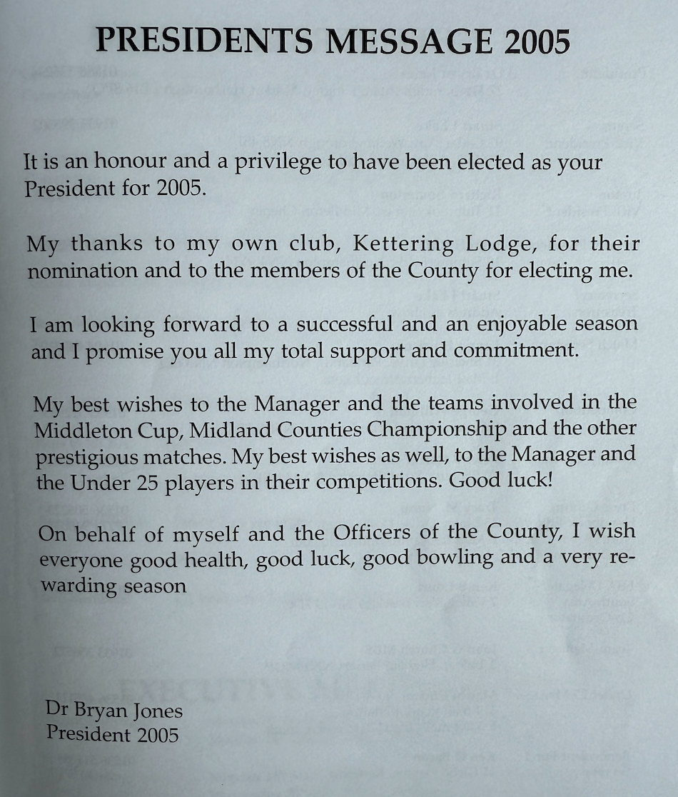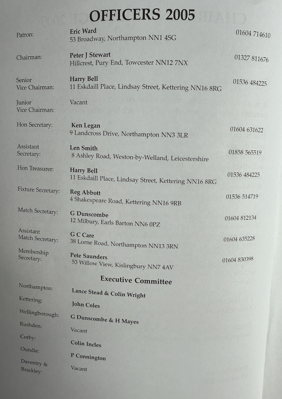 | 2005 | England Internationals | N.D. McKee | Kingsthorpe BC |