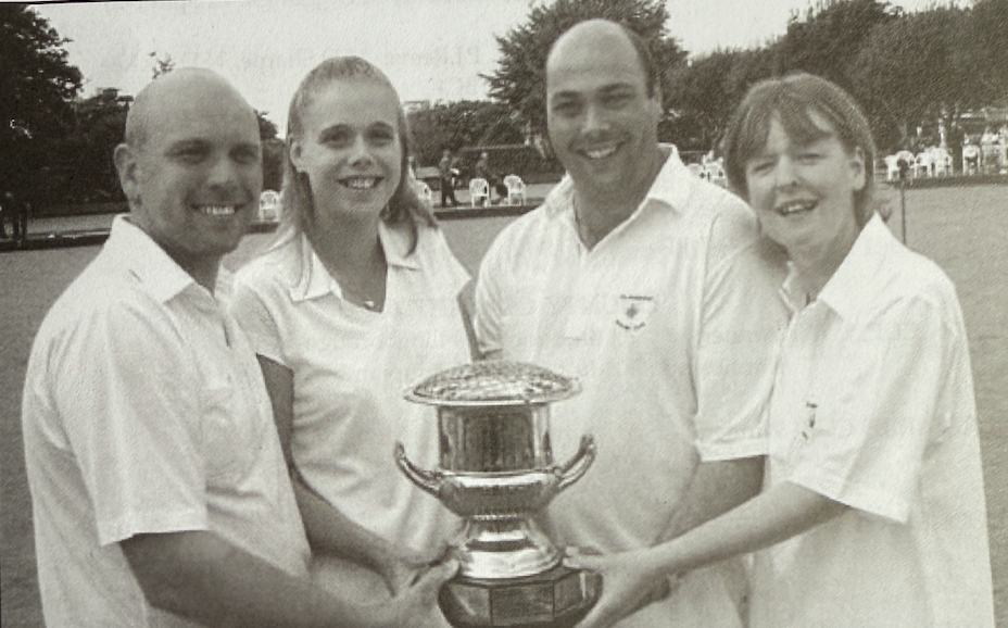 Paul Broderick, Darren Lyman, and Tina Burgess of Wellingborough B.C. and Karen Leveridge of Irchester B.C. win the National Mixed Fours Competition.