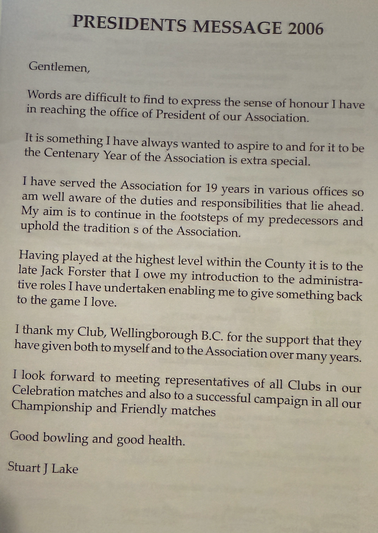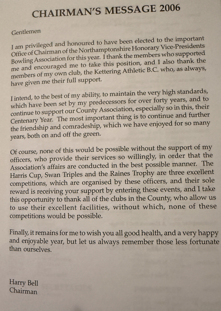 | 2006 | 55 & Over Singles | WINNER | J.M. Haines | Desborough Town BC |