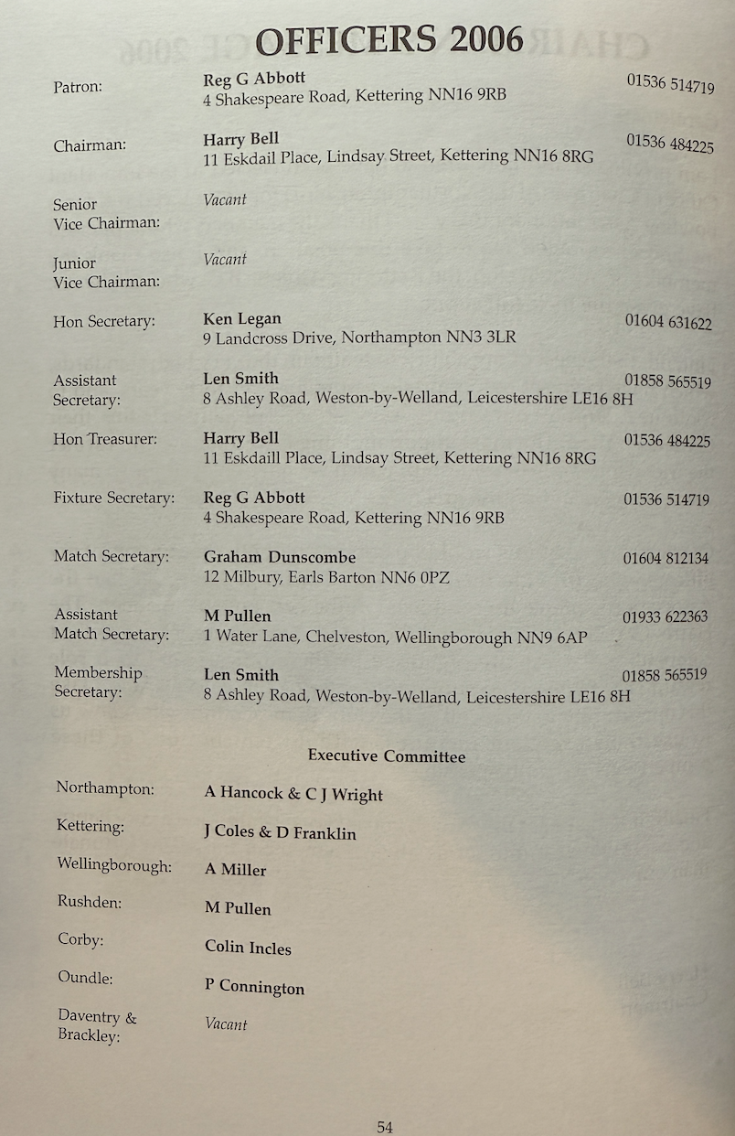 | 2006 | Under 25 England International Trialists | M. Chester | Wellingborough BC |
