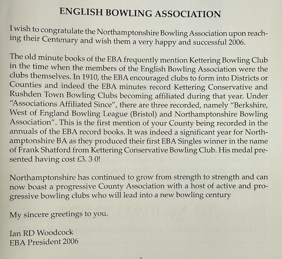 | 2006 | Singles | Finalist | W. Parker | Kingsthorpe BC |
