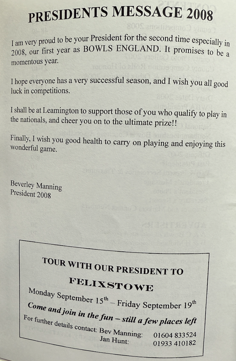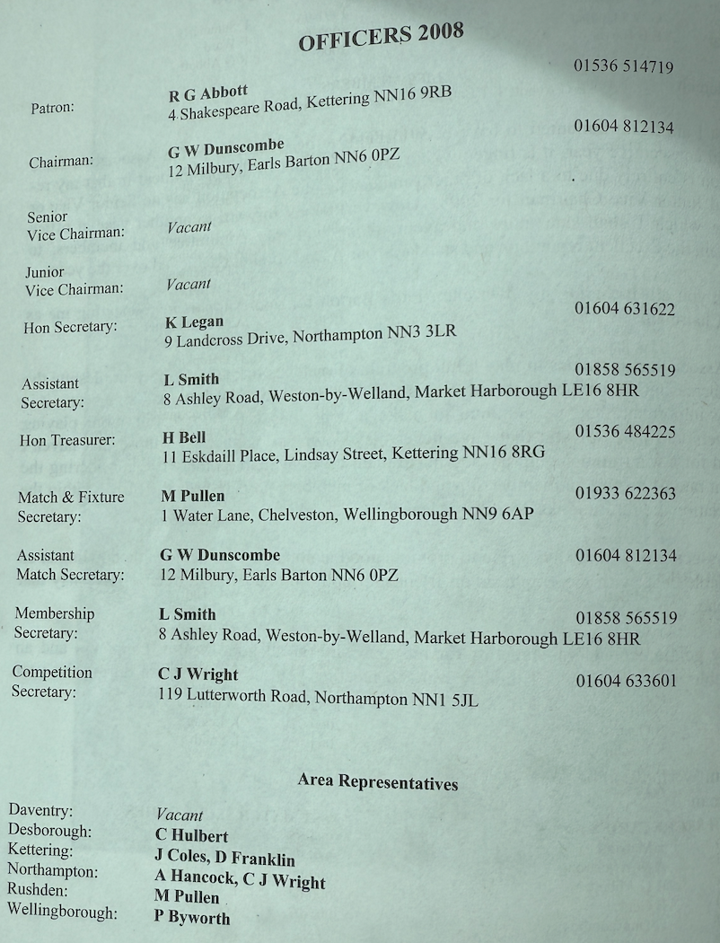 | 2008 | NATIONAL TRIPLES | WINNERS | R. MANN | KINGSTHORPE BC |