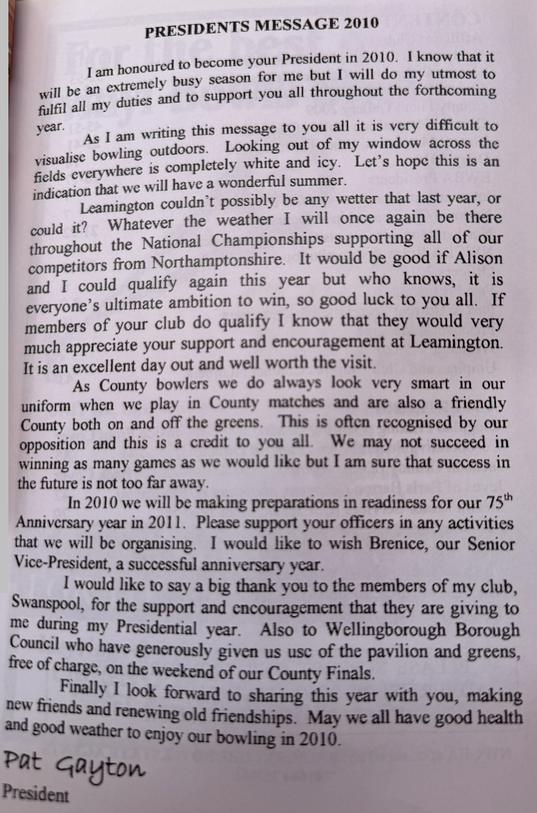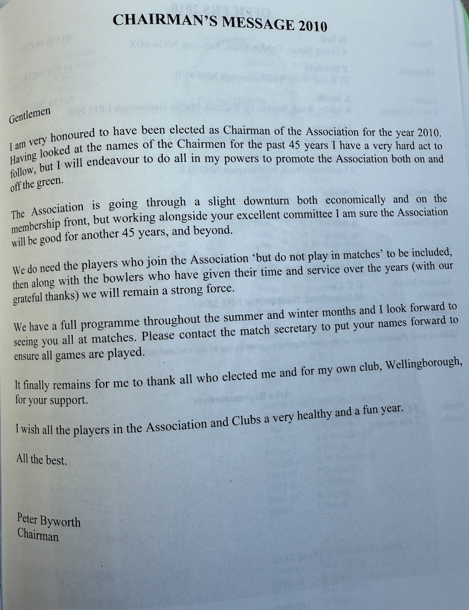 | 2010 | Triples | Finalists | M. Watts | Desborough Town BC |