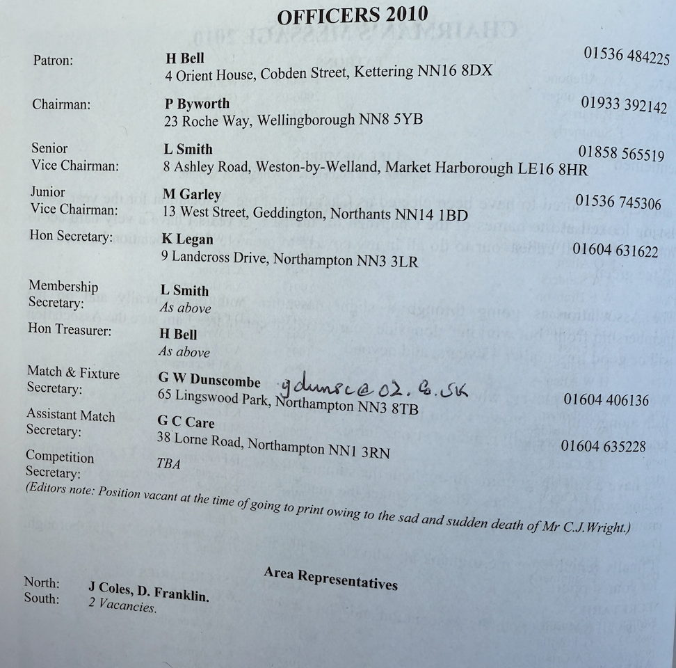 | 2010 | England International Trialist | V.C. Gearey | Kingsthorpe BC |
