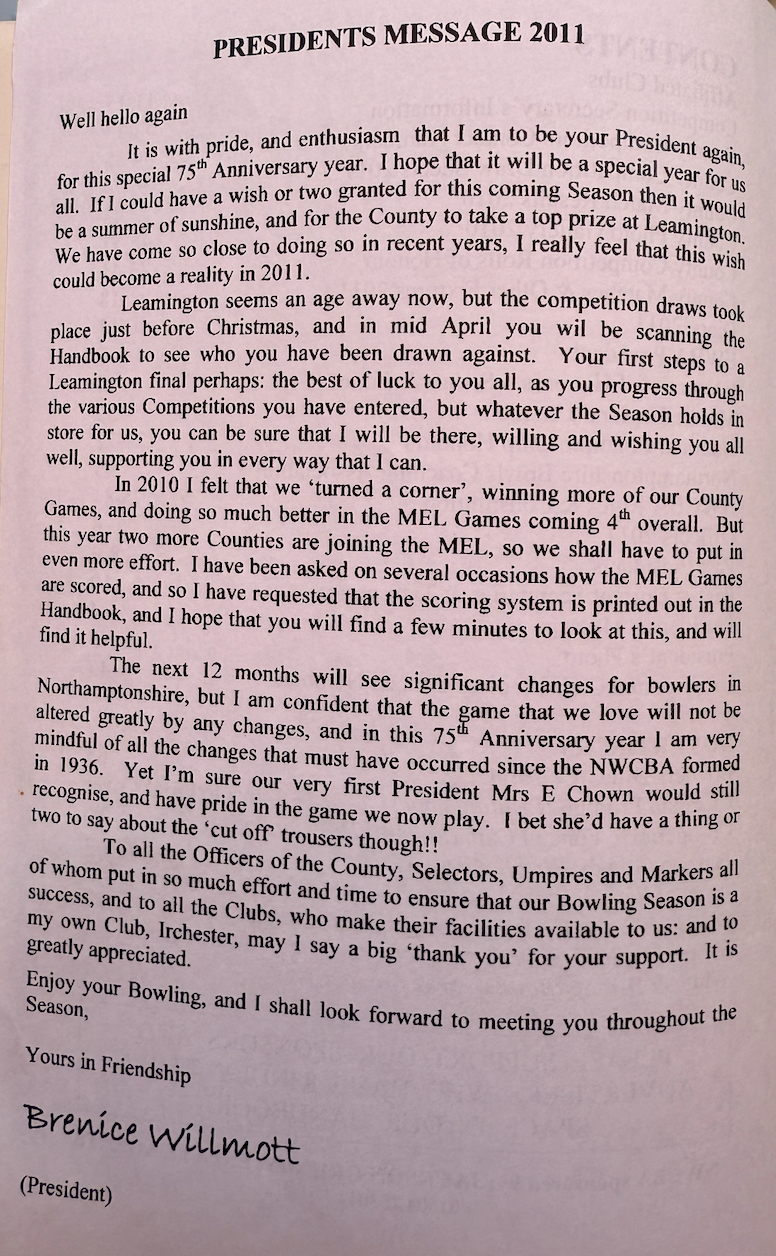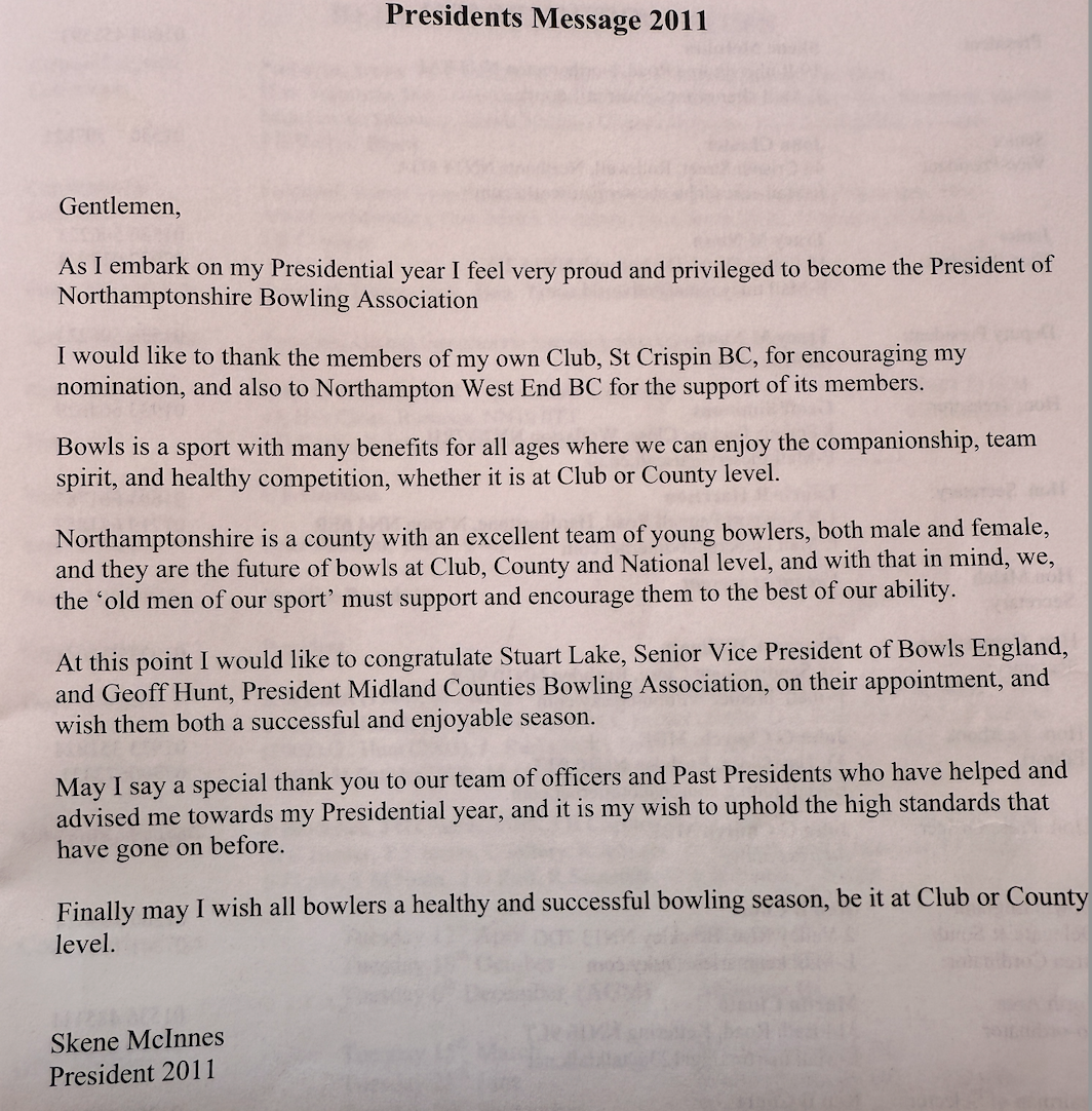 | 2011 | Women's Fours | Finalists | M. Watts | Desborough Town BC |