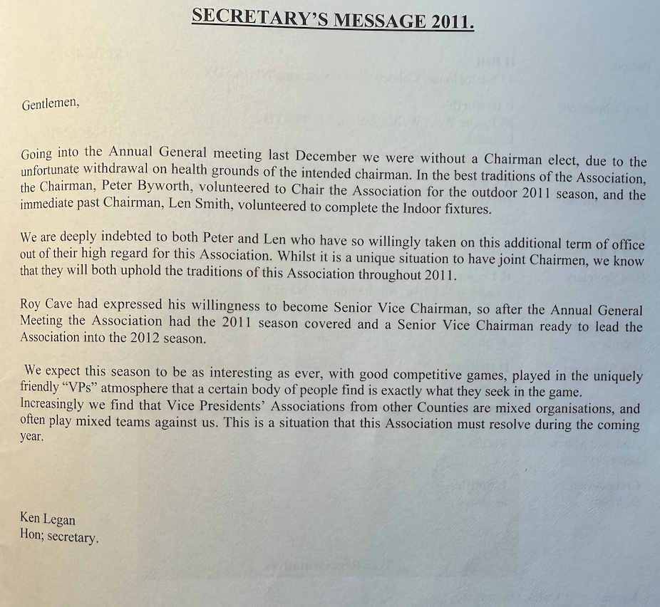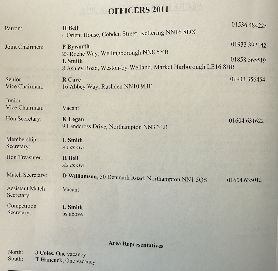 | 2011 | Snr International Trialist | Vernon .C. Gearey | Kingsthorpe BC |