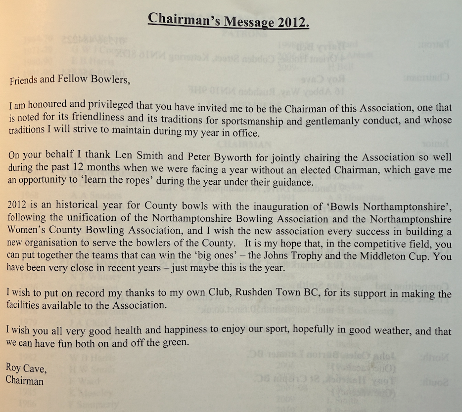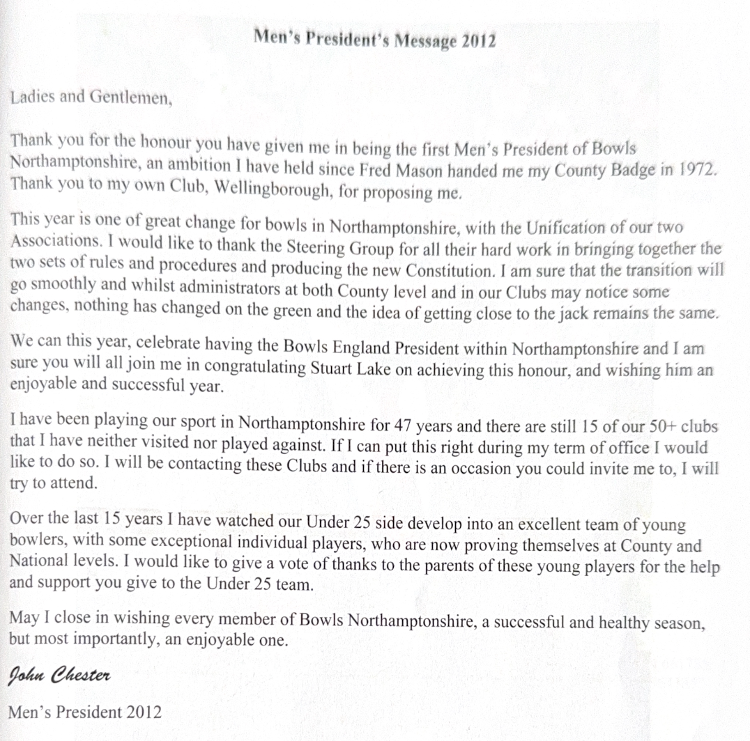 | 2012 | Snr Internationals | Jamie R. Walker | Northampton West End BC |